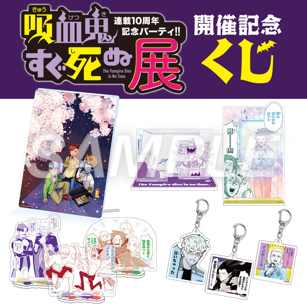 盆ノ木至先生による連載デビュー作「吸血鬼すぐ死ぬ」の連載10周年を記念して初の展覧会を開催します! 複製原稿や貴重な制作で使用した紙原稿の展示、更に登場キャラクターに合わせた立体物の展示とボリューム満載の展示を行います。 また、本展覧会限定のグッズも多数取り扱うので、会場にて吸血鬼すぐ死ぬの世界感をお楽しみください。